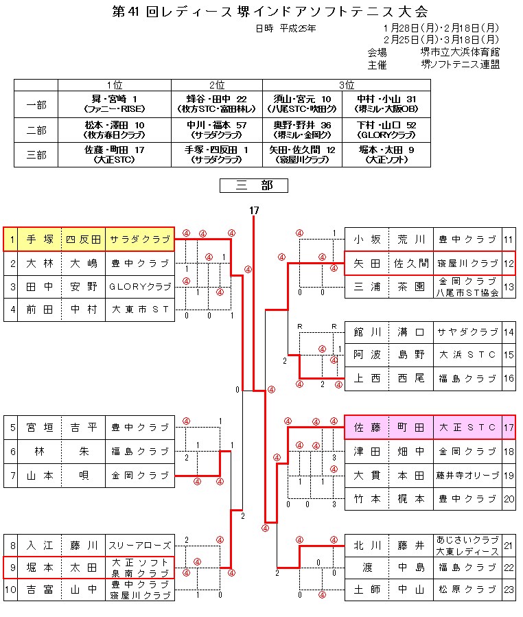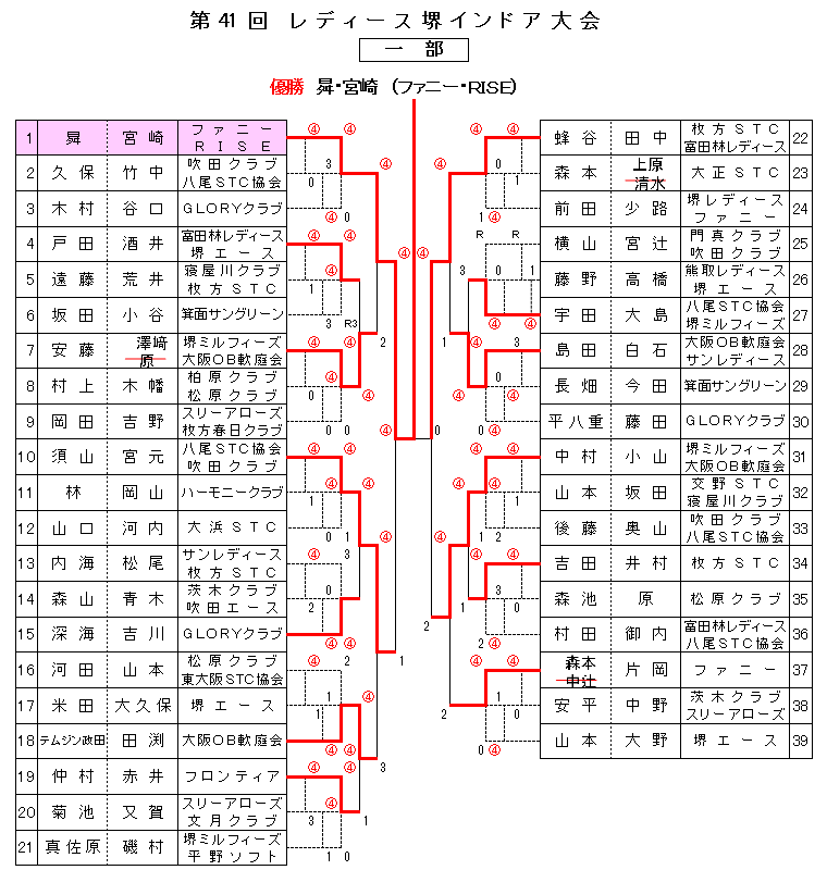 | 1月28日(月) | 第41回レディース堺インドア大会 1部 | 大浜体育館 | PDF版 |